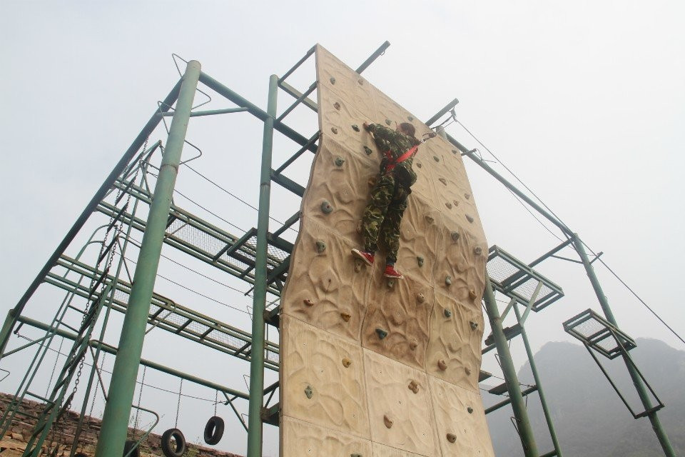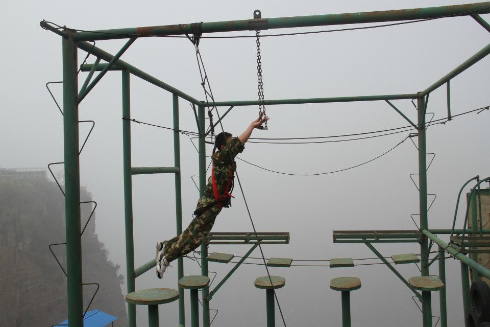 第二天早上,集體跑操,隨后是驚險刺激的“高空起跳抓杠”項目,它讓學員們學會了克服心中的恐懼,面對困難時義無反顧的去前進,在每位學員上到高空時,其他學員都高喊“加油加油,努力努力,超越超越”為期鼓勁兒。隨后在三位教練同時帶隊下進行了“激情60秒”、“動力圈”和“畢業墻”集體協作活動。“動力圈、畢業墻”則是所有人團結一心,其利斷金,簡單的動作重復性去做就是不簡單,由此也讓每位學員聯想到在工作中的自己。