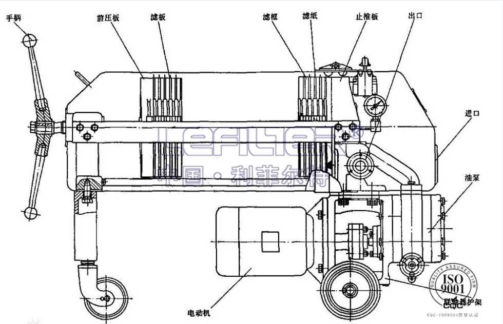 2、濾板和濾框間襯有作為介質的濾紙或濾布,更換方便。憑借壓緊裝置的壓力將濾板和濾框固定形成一個單獨的過濾室,被壓緊在濾板和濾框之間的濾紙或濾布起過濾作用。