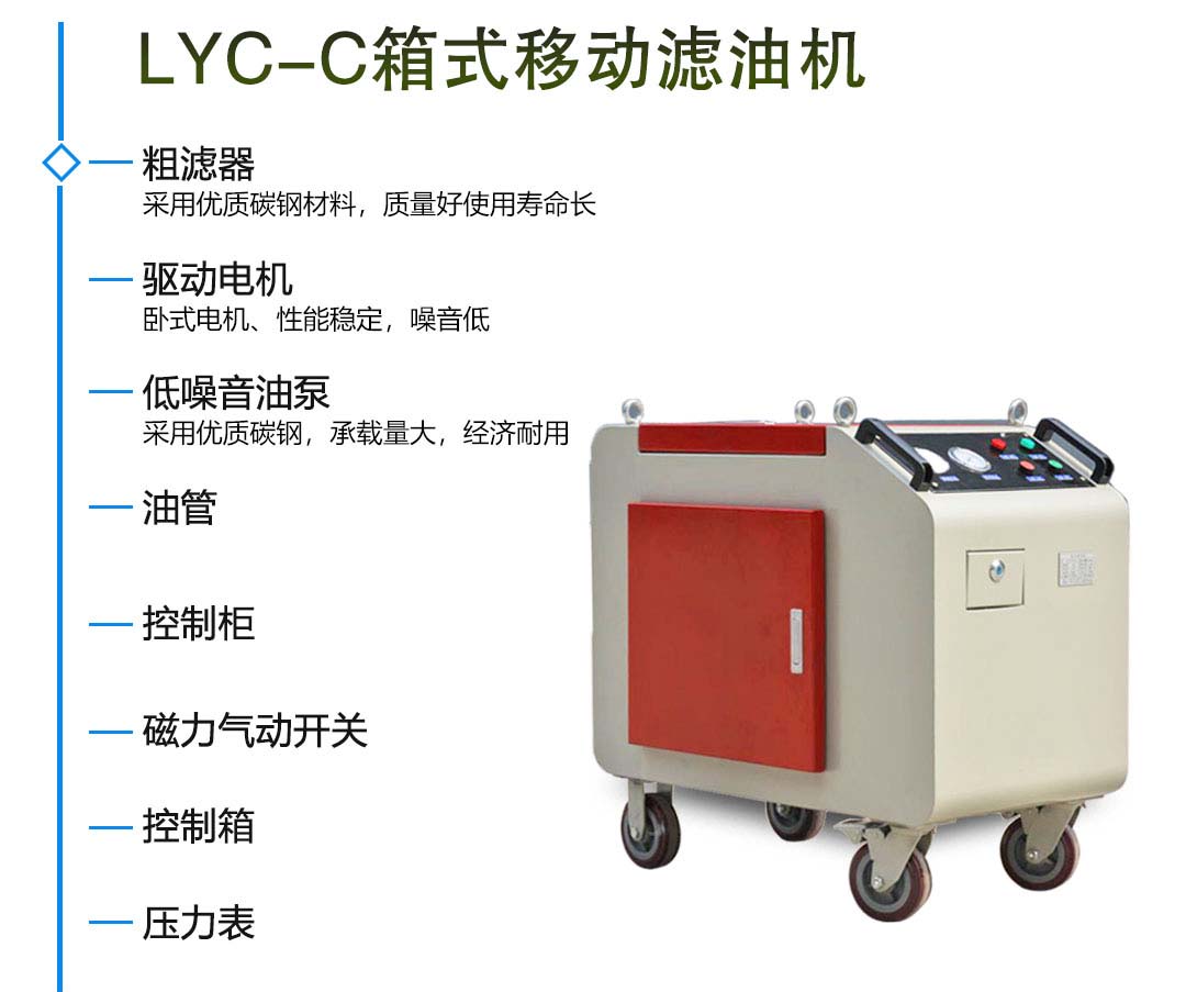 1.箱式移動濾油車包括一個由電機驅動的專用齒輪泵,具有噪音低、自吸能力強,運轉平穩等特點。