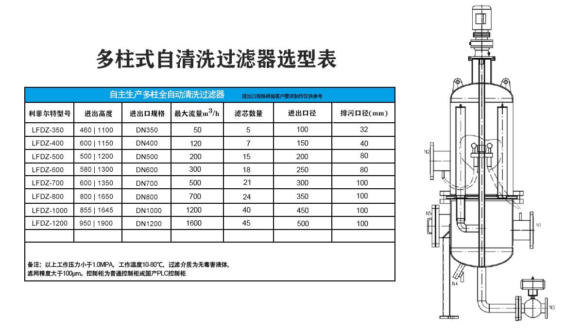 立式多柱式自清洗過濾器選型規格: