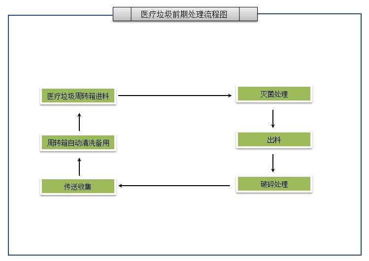 周轉箱進料→滅菌處理→出料→破碎處理→傳輸收集→周轉箱自動清洗→再度循環使用