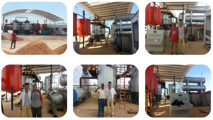 一 、廢橡膠煉油設(shè)備的工藝流程: 1、將原材料直接裝入裂解釜中,催化加熱,餾出油蒸汽,油氣經(jīng)過汽包緩沖釋壓,進(jìn)入冷凝器。 2、可液化部分,冷凝為燃料油,不可液化部分即同步氣體通過安全裝置水封、燃?xì)庀到y(tǒng),一部分被可燃性氣體被捅入燃燒室充當(dāng)燃料燒掉