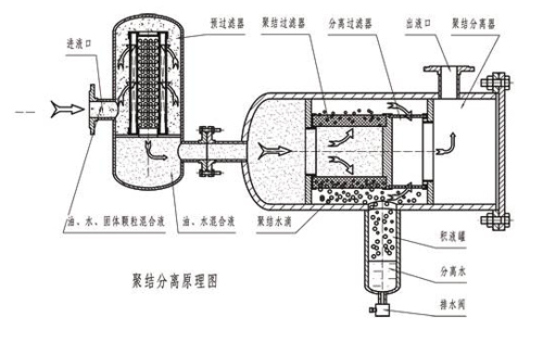 LYC-J系列聚結脫水濾油機技術原理: