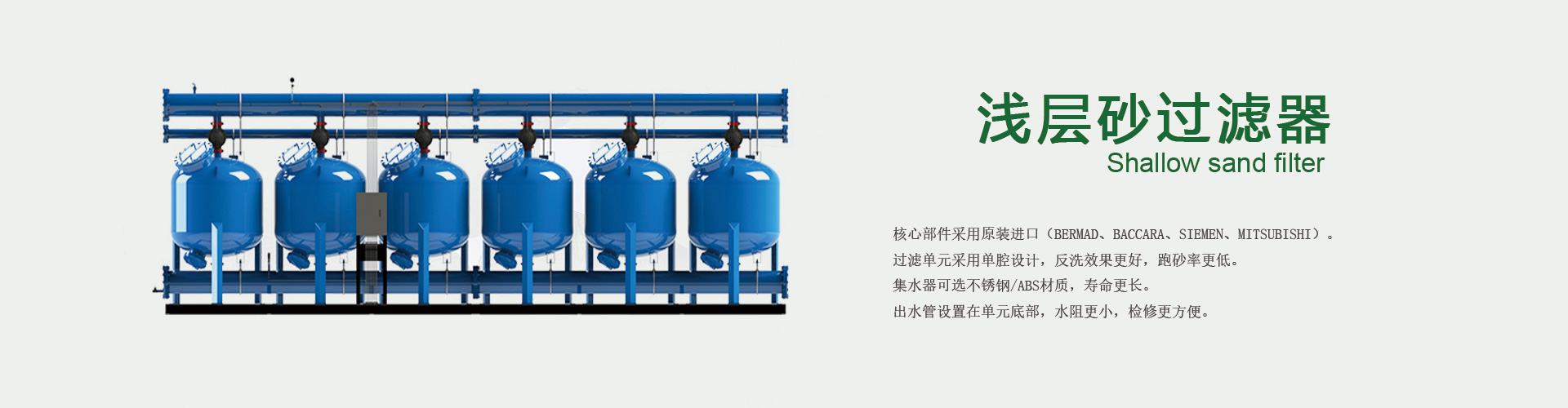 淺層介質過濾系統由一個或多個標準的高速過濾單元組成,水流通過內部的布水器及集水器,利用不同的介質,能有效的去除顆粒物和減低濁度。若裝上特定的濾料,例如活性炭,無煙煤等,還可以吸附去掉相應的有機物,離子等。