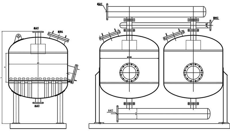 4、反洗水源可選系統內、水塔或外源水源,并可自動切換(特殊要求時)。
