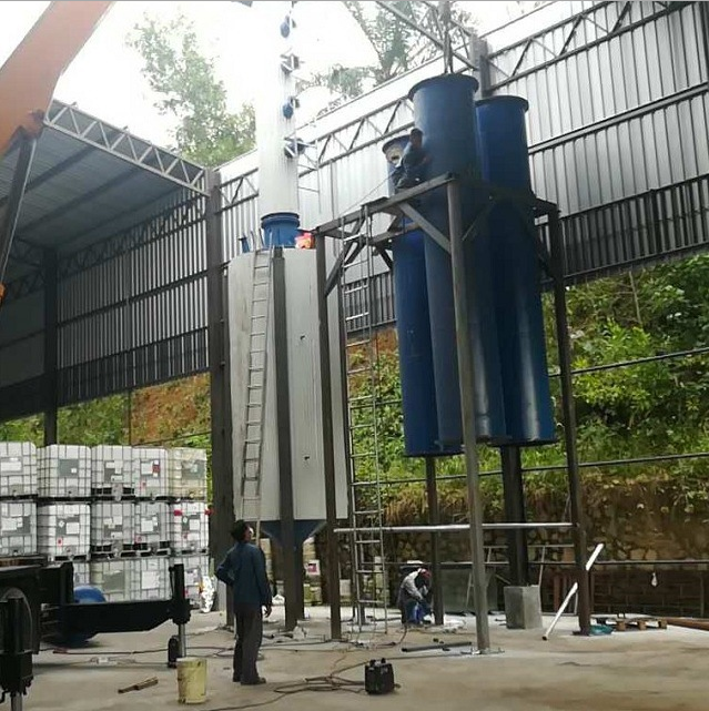 10.  余熱利用,將反應釜爐膛內的煙氣溫度通過除塵器進入預熱器,將物料升溫加熱確保生產連續化。